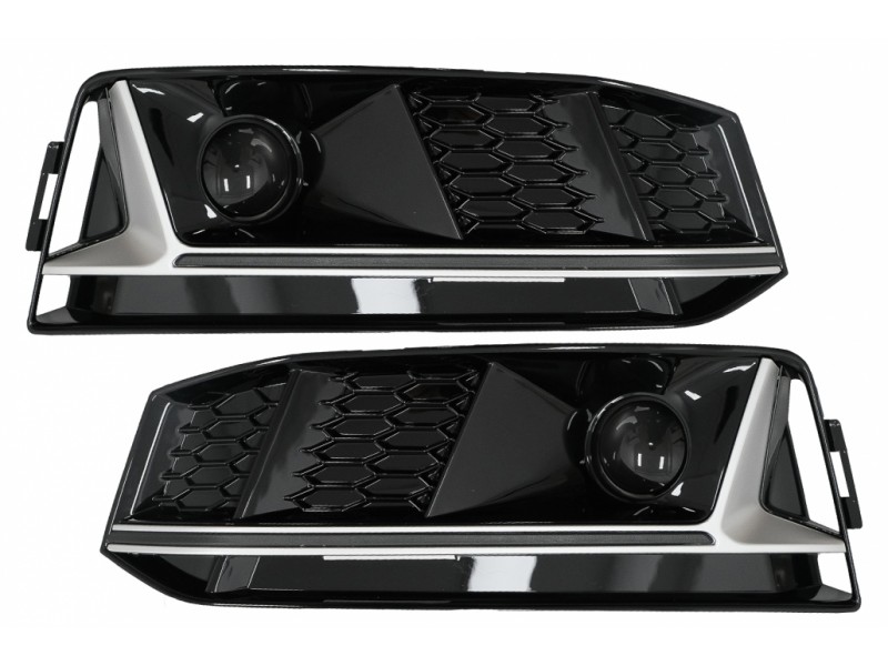 Πλευρικές γρίλιες σχεδιασμού RS4 κατασκευασμένες από πλαστικό ABS υψηλής ποιότητας.Φινίρισμα: Μαύρο πιάνου με ασημένιες ενθέσεις