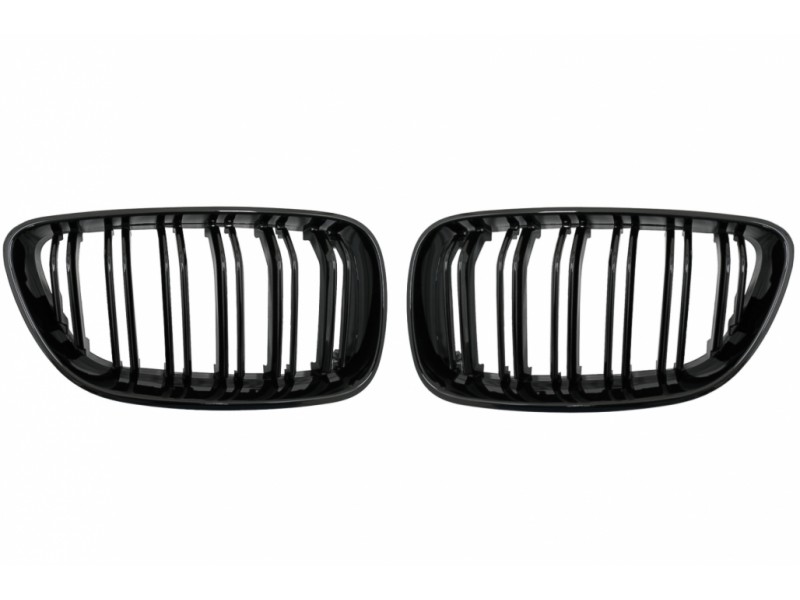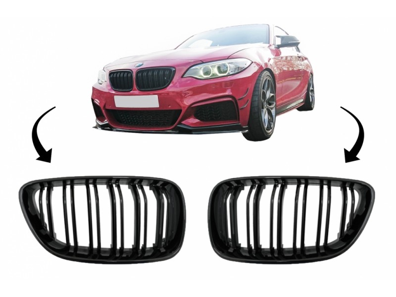 Κεντρικές Γρίλιες Νεφρών Κατάλληλες Για Bmw Σειρά 2 F22 F23 F87 (2014-και μετά) Διπλή Ρίγα M Design Piano Black