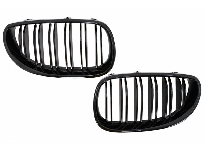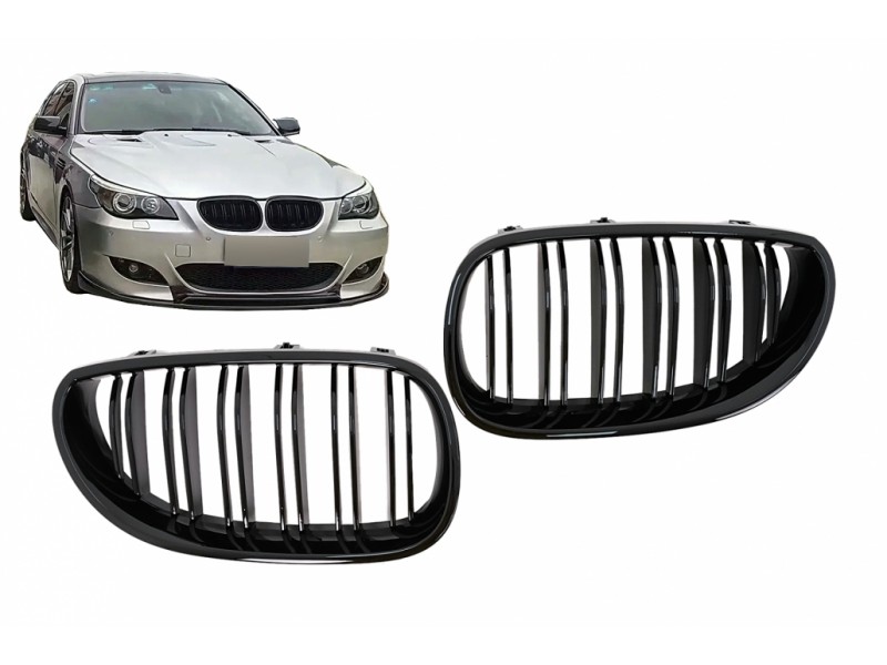 Κεντρικές Γρίλιες Νεφρών Κατάλληλες Για Bmw Σειρά 5 E60 E61 (2003-2010) Διπλή Ρίγα Πιάνου Μαύρο