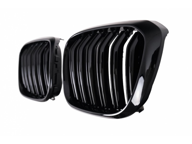 Κεντρικές Γρίλιες Νεφρών Κατάλληλες Για Bmw X3 G01 (11.2017-2021) X4 G02 (02.2018-2021) Διπλή Ρίγα Σε Μαύρο Χρώμα Πιάνου