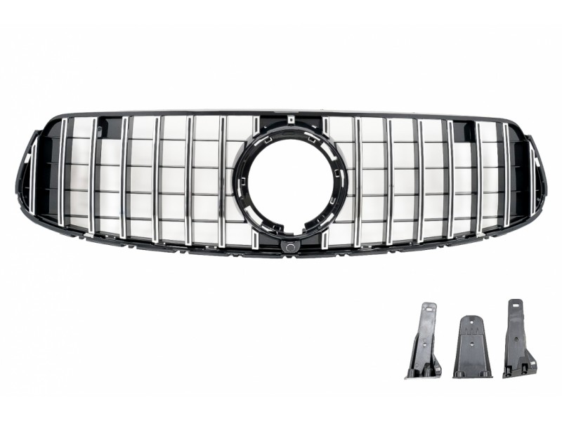 Κεντρική Μάσκα Εμπρός Κατάλληλη Για Mercedes Glc X253 C253 Facelift (2020-2021) Gtr Panamericana Design Black Chrome