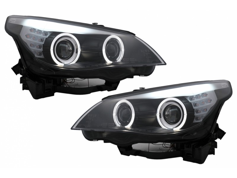 Προβολείς Led Angel Eyes Κατάλληλοι Για Bmw Σειρά 5 E60 E61 (2003-2007) Μαύροι Lci Design