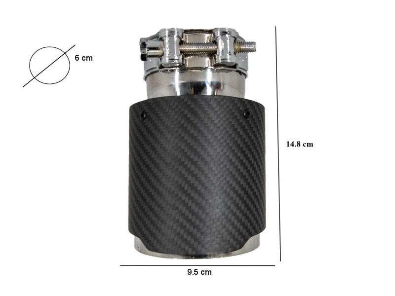 Αυτή η άκρη σιγαστήρα είναι κατασκευασμένη από υψηλής ποιότητας ανοξείδωτο ατσάλι 304 και ανθρακονήματα.Διαστάσεις: