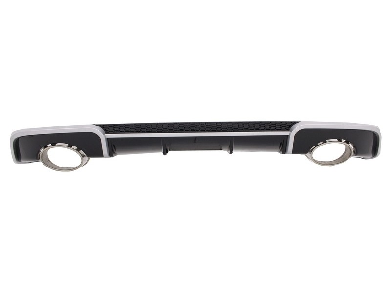 Διαχύτης αέρα πίσω προφυλακτήρα Σχεδίαση RS3Διαχύτης αέρα πίσω προφυλακτήρα RS3 Design κατασκευασμένος από υψηλής ποιότητας πολυπροπυλένιο, εξοπλισμένος με διπλές εξόδους εξάτμισης με άκρες σιγαστήρα από ανοξείδωτο ατσάλι 304 και πλαστική κυψελωτή μάσκα.