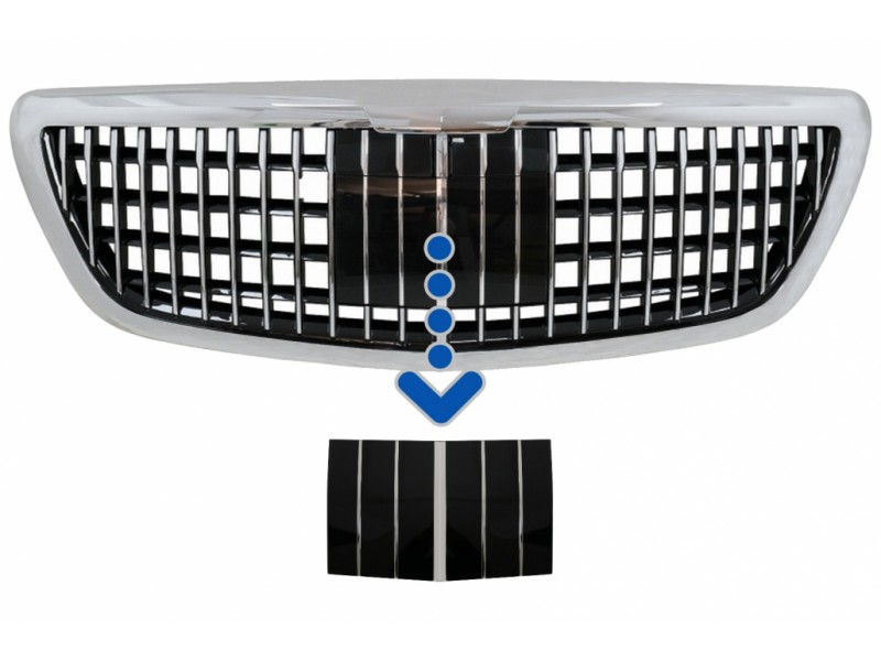 Κάλυμμα Μπροστινής Μάσκας Distronic Κατάλληλο Για Mercedes S-Class W222 X222 (2014-2020) Κάθετου Σχεδιασμού Χρωμίου