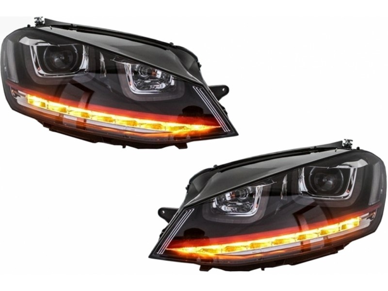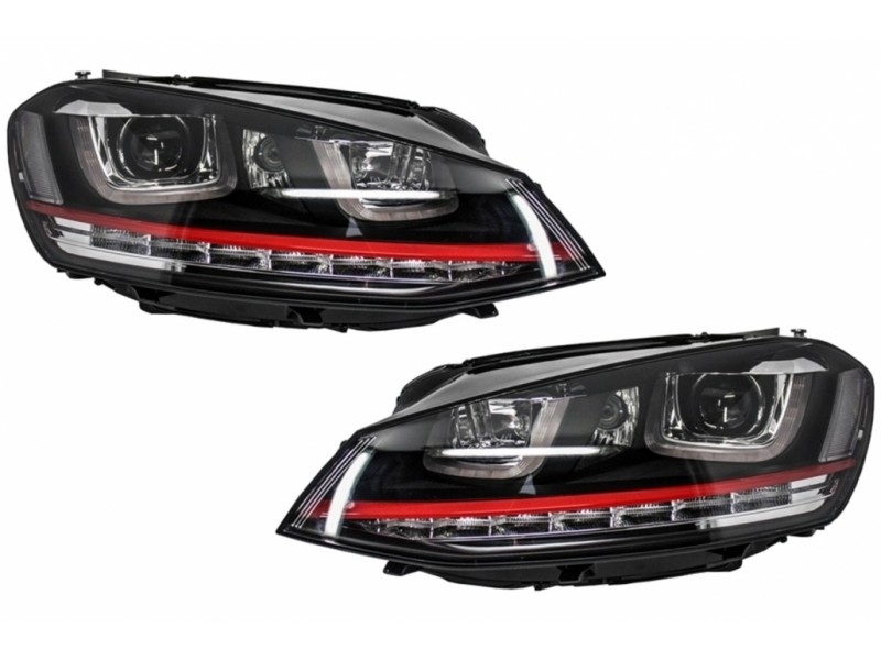 Προβολείς 3D Led Drl Κατάλληλοι Για Vw Golf 7 Vii (2012-2017) Κοκκινοι R20 Gti Look Led Με Ρέοντα Φώτα Στροφής