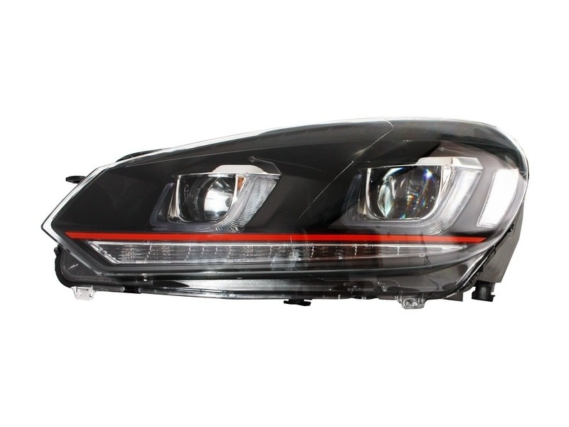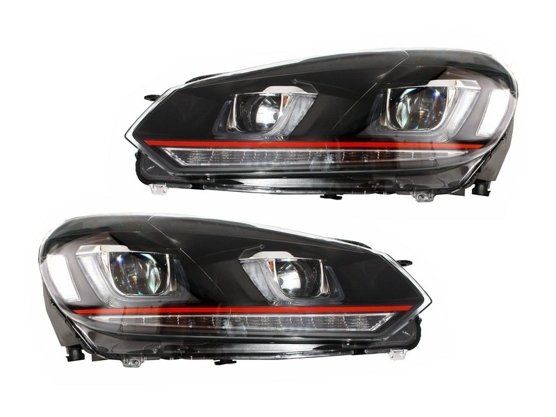 Προβολείς Δεξιόστροφης Κίνησης Κατάλληλοι Για Vw Golf 6 Vi (2008-2013) Golf 7 3D Led Drl U-Design Led Flowing Turning Light Red Stripe