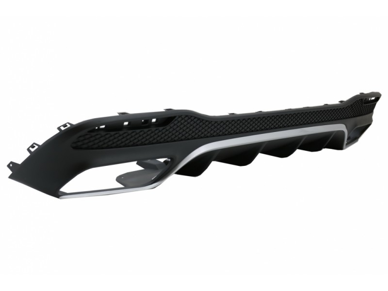 Διαχύτης αέρα πίσω προφυλακτήρα κατασκευασμένος από πλαστικό ABS υψηλής ποιότητας, εξοπλισμένος με διπλές εξόδους εξάτμισηςΧρωμιωμένες ταινίες