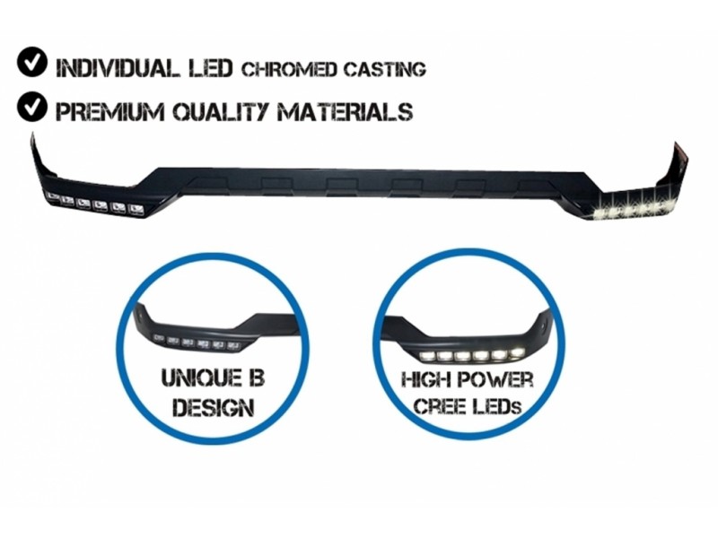 Επέκταση αεροτομής μπροστινού προφυλακτήραΑεροτομή κατασκευασμένη από υψηλής ποιότητας πλαστικό ABS, εξοπλισμένη με 12 φώτα ημέρας CREE LED υψηλής ισχύος
