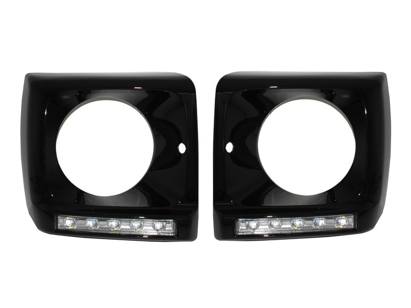 Μαύρα Καλύμματα Προβολέων Με Φώτα Ημέρας Led Drl Χρωμίου Κατάλληλα Για Mercedes G-Class W463 (1989-και μετά) G65 Design Black