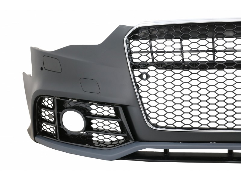 Μπροστινός προφυλακτήρας εξοπλισμένος με ενιαίο πλαίσιο - μάσκα σε σχήμα κηρήθρας σε μαύρο χρώμιο, σετ προβολέων ομίχλης, λάμπες, βάση και καπάκι ρυμούλκησης.