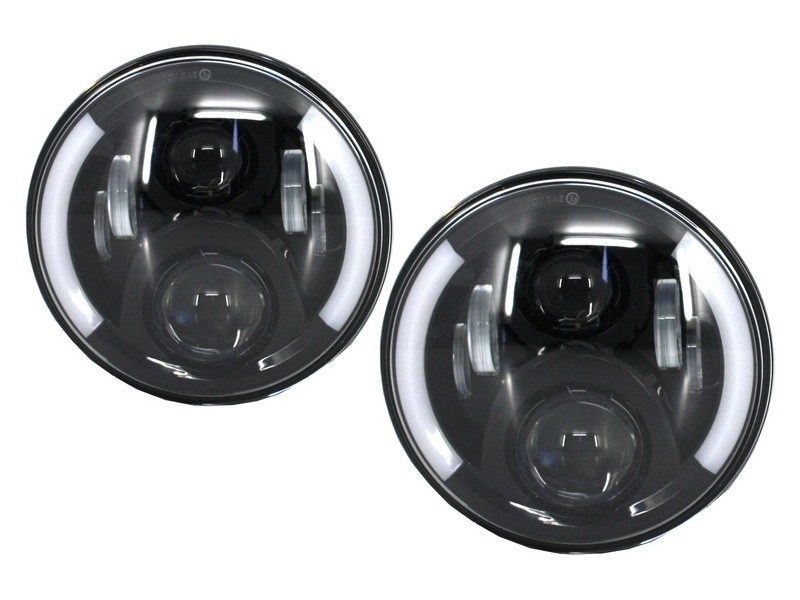 Προβολείς Cree Led 7 Ιντσών Κατάλληλοι Για Jeep Wrangler Jk (2007-2017), Mercedes G-Class W463 (1989-2017), Land Rover Defender Half Halo Μαύροι
