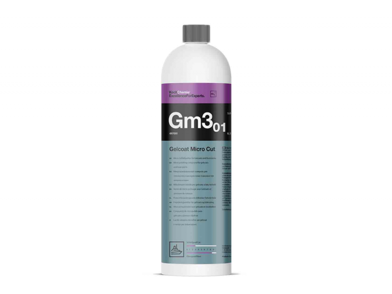 Το Koch-Chemie GM3.01 Gelcoat Micro Cut είναι μια αλοιφή γυαλίσματος πολύ λεπτής κοκκομετρίας, σχεδιασμένη για το τελικό στάδιο φινιρίσματος σε gelcoat και marine βαμμένες επιφάνειες. Αφαιρεί αποτελεσματικά ολογράμματα, haze και πολύ λεπτές γρατζουνιές, επαναφέροντας απόλυτα καθαρό και καθρέπτη αποτέλεσμα.