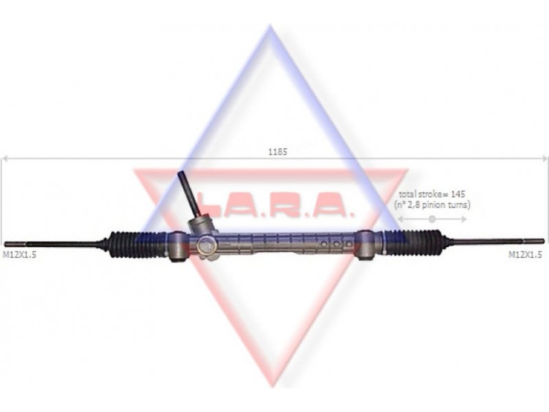 Criteries : Απόσταση των οπών στερέωσης [mm] 400, Αριστερή ή δεξιά κυκλοφορία για δεξιά κυκλοφορία, Αριστερό ή δεξιό τιμόνι για αριστεροτίμονα οχήματα, Διάμετρος, στέλεχος εισόδου [mm] 16,6, Διαστάσεις σπειρώματος αξονικής άρθρωσης M12x1,5, Είδος κιβωτίου συστήματος οδήγησης Οδοντωτή ράβδος - πυξίδα διεύθυνσης, Μήκος 1/ μήκος 2 [mm] stroke= 145, Ολικό μήκος [mm] 1185, Πλήθος των στροφών τιμονιού 2,8, Τρόπος λειτουργίας ηλεκτρικό, Τρόπος λειτουργίας χειροκίνητο, Τύπος σπειρώματος αξονικής άρθρωσης με εξωτερικό σπείρωμα, Τύπος σύνδεσης, στέλεχος εισόδου τετράγωνο, Ύψος, στέλεχος εισόδου [mm] 108