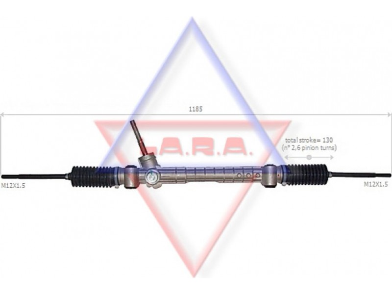 Criteries : Απόσταση των οπών στερέωσης [mm] 400, Αριστερή ή δεξιά κυκλοφορία για δεξιά κυκλοφορία, Αριστερό ή δεξιό τιμόνι για αριστεροτίμονα οχήματα, Διάμετρος, στέλεχος εισόδου [mm] 16,6, Διαστάσεις σπειρώματος αξονικής άρθρωσης M12x1,5, Είδος κιβωτίου συστήματος οδήγησης Οδοντωτή ράβδος - πυξίδα διεύθυνσης, Μήκος 1/ μήκος 2 [mm] stroke= 130, Ολικό μήκος [mm] 1185, Πλήθος των στροφών τιμονιού 2,6, Τρόπος λειτουργίας ηλεκτρικό, Τρόπος λειτουργίας χειροκίνητο, Τύπος σπειρώματος αξονικής άρθρωσης με εξωτερικό σπείρωμα, Τύπος σύνδεσης, στέλεχος εισόδου τετράγωνο, Ύψος, στέλεχος εισόδου [mm] 108