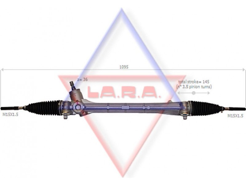 Criteries : Απόσταση των οπών στερέωσης [mm] 503, Αριθμός δοντιών, στέλεχος εισόδου 36, Αριστερή ή δεξιά κυκλοφορία για δεξιά κυκλοφορία, Αριστερό ή δεξιό τιμόνι για αριστεροτίμονα οχήματα, Διάμετρος, στέλεχος εισόδου [mm] 17,2, Διαστάσεις σπειρώματος αξονικής άρθρωσης M15x1,5, Είδος κιβωτίου συστήματος οδήγησης Οδοντωτή ράβδος - πυξίδα διεύθυνσης, Μήκος 1/ μήκος 2 [mm] stroke= 140, Ολικό μήκος [mm] 1095, Πλήθος των στροφών τιμονιού 3,3, Τρόπος λειτουργίας ηλεκτρικό, Τρόπος λειτουργίας χειροκίνητο, Τύπος σπειρώματος αξονικής άρθρωσης με εξωτερικό σπείρωμα, Τύπος σύνδεσης, στέλεχος εισόδου οδοντωτό, Ύψος, στέλεχος εισόδου [mm] 42