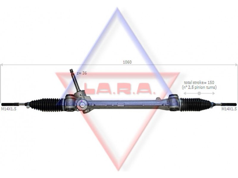 Criteries : Απόσταση των οπών στερέωσης [mm] 448, Αριθμός δοντιών, στέλεχος εισόδου 36, Αριστερή ή δεξιά κυκλοφορία για δεξιά κυκλοφορία, Αριστερό ή δεξιό τιμόνι για αριστεροτίμονα οχήματα, Διάμετρος, στέλεχος εισόδου [mm] 17,2, Διαστάσεις σπειρώματος αξονικής άρθρωσης M14x1,5, Είδος κιβωτίου συστήματος οδήγησης Οδοντωτή ράβδος - πυξίδα διεύθυνσης, Μήκος 1/ μήκος 2 [mm] stroke= 150, Ολικό μήκος [mm] 1060, Πλήθος των στροφών τιμονιού 2,5, Τρόπος λειτουργίας ηλεκτρικό, Τρόπος λειτουργίας χειροκίνητο, Τύπος σπειρώματος αξονικής άρθρωσης με εξωτερικό σπείρωμα, Τύπος σύνδεσης, στέλεχος εισόδου οδοντωτό, Ύψος, στέλεχος εισόδου [mm] 109
