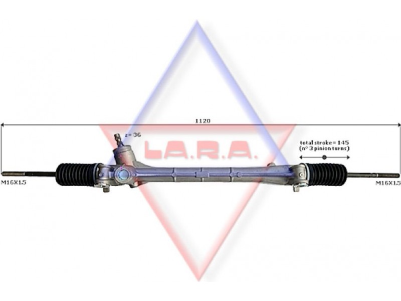 Criteries : Απόσταση των οπών στερέωσης [mm] 503, Αριθμός δοντιών, στέλεχος εισόδου 36, Αριστερή ή δεξιά κυκλοφορία για δεξιά κυκλοφορία, Αριστερό ή δεξιό τιμόνι για αριστεροτίμονα οχήματα, Διάμετρος, στέλεχος εισόδου [mm] 17,2, Διαστάσεις σπειρώματος αξονικής άρθρωσης M16x1,5, Είδος κιβωτίου συστήματος οδήγησης Οδοντωτή ράβδος - πυξίδα διεύθυνσης, Μήκος 1/ μήκος 2 [mm] stroke= 145, Ολικό μήκος [mm] 1119, Τρόπος λειτουργίας ηλεκτρικό, Τρόπος λειτουργίας χειροκίνητο, Τύπος σπειρώματος αξονικής άρθρωσης με εξωτερικό σπείρωμα, Τύπος σύνδεσης, στέλεχος εισόδου οδοντωτό, Ύψος, στέλεχος εισόδου [mm] 42