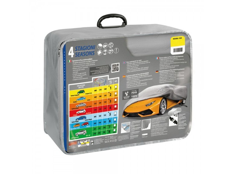 Προστατέψτε το αυτοκίνητό σας όλο τον χρόνο με την premium κουκούλα αυτοκινήτου Lampa 4 Seasons AG-1 με διαστάσεις 460x180x150 mm (ΜxΠxΥ), ιταλικής προέλευσης και υψηλής ποιότητας, σχεδιασμένη για μέγιστη αντοχή και απόλυτη αδιαβροχοποίηση και ιδανική για μεσαίου μεγέθους ΙΧ αυτοκίνητα. Η κουκούλα είναι κατασκευασμένη από PEVA υψηλής ποιότητας, 100% αδιάβροχο υλικό, ιδανικό για χρήση σε όλες τις εποχές. Οι σφραγισμένες ραφές με τεχνολογία ultrasonic welding εξασφαλίζουν πλήρη στεγανότητα, αποτρέποντας τη διείσδυση νερού ακόμα και σε έντονες βροχοπτώσεις. Το εξαιρετικά μαλακό και μη δραστικό ύφασμα προστατεύει το χρώμα του οχήματος από γρατζουνιές, ενώ παράλληλα προσφέρει αποτελεσματική προστασία από: ήλιο, UV ακτινοβολία, σκόνη, βροχή και ρύπους. Χάρη στα ελαστικά τελειώματα εμπρός και πίσω και τον ιμάντα στερέωσης με κούμπωμα κάτω από το αμάξωμα, η κουκούλα παραμένει σταθερή ακόμα και σε δυνατό αέρα, εξασφαλίζοντας τέλεια εφαρμογή.