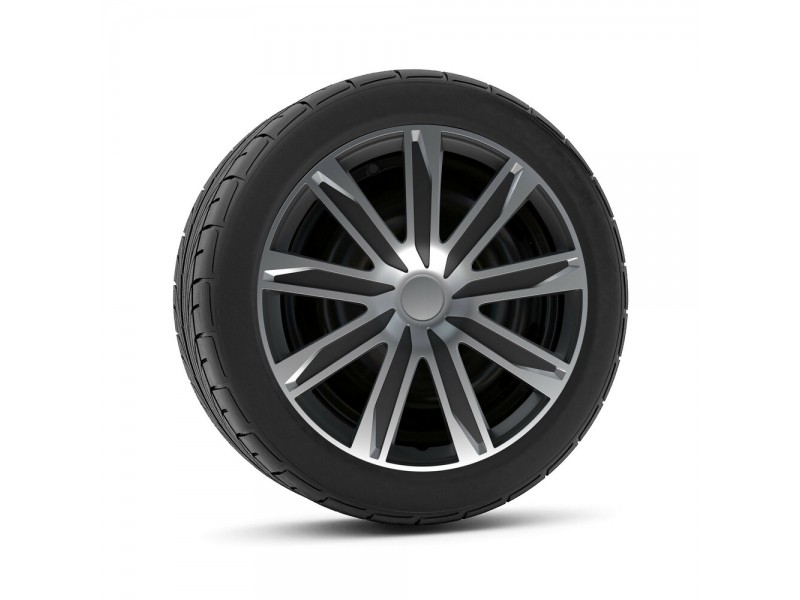Κατασκευασμένα από ενισχυμένο πλαστικό ABS υψηλής αντοχής, αυτά τα τάσια είναι ελαφριά αλλά ανθεκτικά στο χρόνο και στις καθημερινές απαιτήσεις. Η διχρωμία σε ασημί και μαύρο χρώμα δημιουργεί ένα μοντέρνο και κομψό αποτέλεσμα που ταιριάζει με ένα ευρύ φάσμα οχημάτων και ζαντών. Το σύστημα στερέωσης είναι εύκολο στην τοποθέτηση και σταθερό, με συμπαγείς δακτυλίους κράτησης που διασφαλίζουν ότι τα τάσια παραμένουν σταθερά στη θέση τους στον τροχό κατά την οδήγηση. Η διάμετρος Ø 16″ τα καθιστά κατάλληλα για τους περισσότερους τροχούς, που έχουν αυτό το μέγεθος.