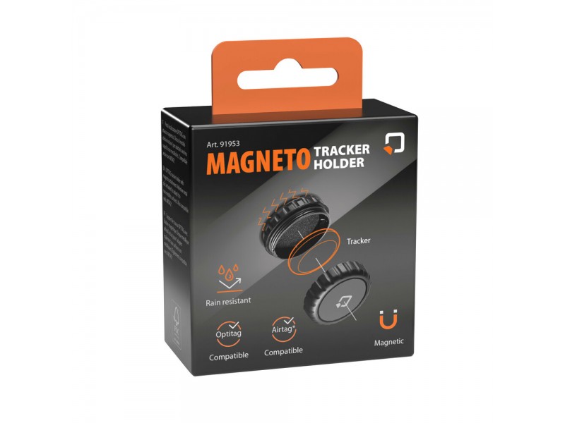Βάση στήριξης Optitag tracker με μαγνητική προσάρτηση. Περιλαμβάνεται αυτοκόλλητος μεταλλικός δίσκος (για προσαρμογή σε μη μεταλλικές επιφάνειες). Συμβατό και με Airtag. Ανθεκτικό στη βροχή.
