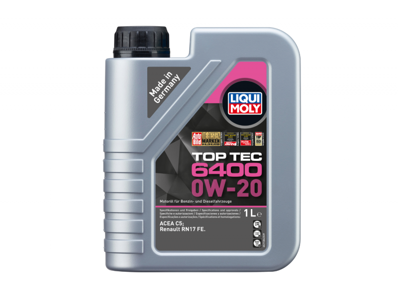 Το Liqui Moly Top Tec 6400 0W-20 είναι ένα πλήρως συνθετικό, υψηλής τεχνολογίας λιπαντικό κινητήρα με βαθμό ιξώδους SAE 0W-20, κατάλληλο για κινητήρες βενζίνης και diesel όπου απαιτείται λεπτόρρευστο λάδι με εξαιρετική προστασία και ροή. Είναι σχεδιασμένο να παρέχει άριστη λίπανση από την πρώτη εκκίνηση, μειωμένη φθορά και μειωμένη κατανάλωση καυσίμου, καθώς και σταθερότητα του λιπαντικού φιλμ σε διάφορες θερμοκρασίες και συνθήκες λειτουργίας. Το προϊόν είναι επίσης κατάλληλο για οχήματα με φίλτρο σωματιδίων (DPF) και κινητήρες με turbo, και μπορεί να χρησιμοποιηθεί και σε οχήματα με κίνηση CNG/LPG.
