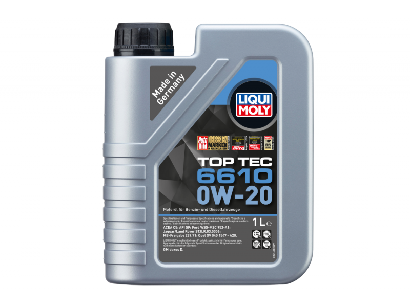 Το Liqui Moly Top Tec 6610 0W-20 είναι ένα πλήρως συνθετικό λιπαντικό κινητήρα υψηλής τεχνολογίας με πολύ χαμηλό ιξώδες SAE 0W-20, κατάλληλο για σύγχρονους κινητήρες βενζίνης και diesel όπου απαιτούνται προϊόντα με εξαιρετική προστασία, γρήγορη λίπανση μετά από ψυχρή εκκίνηση και σταθερότητα ιξώδους σε ευρεία γκάμα θερμοκρασιών. Η σύνθεσή του μειώνει τη φθορά και τις απώλειες ενέργειας λόγω τριβής, συμβάλλοντας στη βελτίωση της οικονομίας καυσίμου και στη διατήρηση καθαρού κινητήρα. Κατάλληλο για κινητήρες με turbo, συστήματα Start-Stop και για χρήση με παρατεταμένα διαστήματα αλλαγής λαδιού.