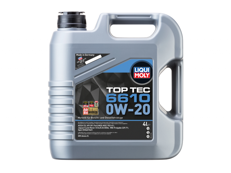 Το Liqui Moly Top Tec 6610 0W-20 είναι ένα πλήρως συνθετικό λιπαντικό κινητήρα υψηλής τεχνολογίας με πολύ χαμηλό ιξώδες SAE 0W-20, σχεδιασμένο για σύγχρονους κινητήρες βενζίνης και diesel που απαιτούν εξαιρετική προστασία, άμεση λίπανση μετά από ψυχρή εκκίνηση και σταθερότητα ιξώδους σε ευρύ φάσμα θερμοκρασιών. Η προηγμένη σύνθεσή του μειώνει τη φθορά και την κατανάλωση καυσίμου, βελτιώνοντας την οικονομία λειτουργίας του κινητήρα και συμβάλλοντας στη διατήρηση καθαρότερης λειτουργίας με λιγότερα ιζήματα. Κατάλληλο για κινητήρες με turbo, συστήματα Start-Stop και για εφαρμογές όπου προβλέπονται παρατεταμένα διαστήματα αλλαγής λαδιού.