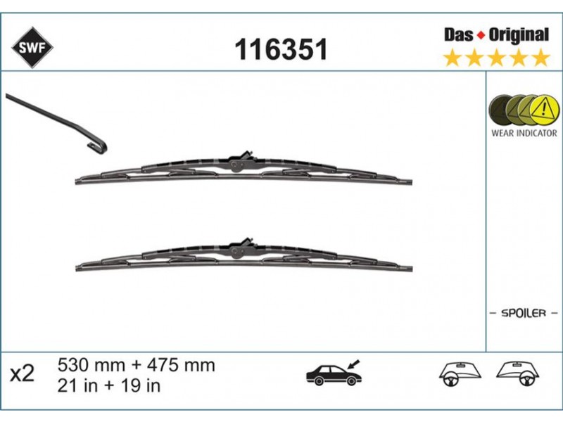 116351 ΜΑΚΤΡΑ X2 SWF STANDARD (530+475MM) ΣΠΟΙΛΕΡ SWF 116351 - Μάκτρο καθαριστήρα