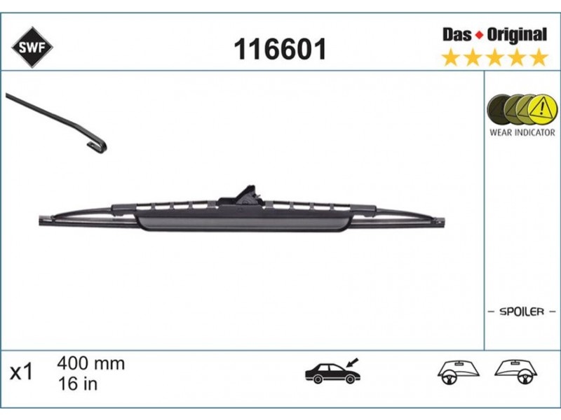 116601 ΜΑΚΤΡΑ X1 SWF STANDARD (400MM) ΣΠΟΙΛΕΡ DAS ORIGINAL SWF 116601 - Μάκτρο καθαριστήρα