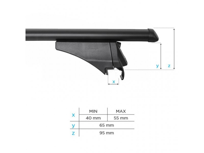 - Άκρα τοποθέτησης, τα οποία "πιάνουν" πάνω στις ήδη υπάρχουσες παράλληλες μπάρες της οροφής με επένδυση καουτσούκ σε όλα τα σημεία που έρχονται σε επαφή με το όχημα για προστασία και αποφυγή δημιουργίας γρατζουνιών ή φθορών. Τα άκρα διαθέτουν ειδικές αναμονές για προσθήκη αντικλεπτικού συστήματος ασφαλείας.
