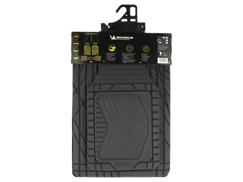 Τα προσαρμοσμένα πατάκια Michelin® είναι κατασκευασμένα από ένα παχύ, ανθεκτικό καουτσούκ, σχεδιασμένο για να αντέχει σε συνεχή χρήση. Τα καθολικά πατάκια με γραμμές επένδυσης παρέχουν μια πιο εξατομικευμένη εφαρμογή, σχεδιασμένα για τα περισσότερα αυτοκίνητα, SUV και Van. 1. Ο σχεδιασμός με υπερυψωμένες ραβδώσεις παγιδεύει τα υπολείμματα και τις διαρροές για να προστατεύει το εσωτερικό σας 2. Οι άκρες επένδυσης που ταιριάζουν στις ανάγκες σας βοηθούν να προσαρμόσετε το πατάκι σας για μέγιστη κάλυψη και προστασία 3. Κατασκευή παντός καιρού για μέγιστη προστασία 4. Το ανθεκτικό πίσω μέρος με σχαράκια ασφαλίζει σταθερά το πατάκι για αξιόπιστη καθημερινή προστασία 5. Σχεδιασμένο για να ταιριάζει στα περισσότερα αυτοκίνητα, καθολικός σχεδιασμός 6. Εύκολη φροντίδα - απλώς ξεπλύνετε με νερό ανάλογα με τις ανάγκες Χρώμα: Μαύρο Περιέχει: Σετ 4 τεμαχίων πατακιού δαπέδου καθολικής χρήσης (2 μπροστά & 2 πίσω) Υλικό: Συνθετικό καουτσούκ PVC Τοποθέτηση: Τοποθετήστε το πατάκι στο πορτμπαγκάζ ή στο χώρο αποσκευών. Σημειώστε την περιοχή για επένδυση για εξατομικευμένη εφαρμογή. Κόψτε προσεκτικά το πατάκι χρησιμοποιώντας ψαλίδι και επανατοποθετήστε το.