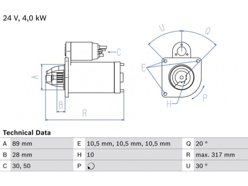 Criteries : Αριθμός δοντιών 10, Αρχική θέση γραναζιού [mm] 28, Γωνία Οπή στερέωσης [μοίρες] 30, Γωνία στήριξης [μοίρες] 30, Γωνία Στόμιο [μοίρες] 20, Διάμετρος οπής 2 [mm] 10,5, Διαμέτρος οπής 3 [mm] 10,5, Διάμετρος οπής [mm] 10,5, Διάμετρος φλάντζας [mm] 89, Επαφή 30, Επαφή 50, Θέση/βαθμοί links, Ισχύς μίζας [kW] 4, Μήκος [mm] 317, Παλαιό εξάρτημα , Παραλλαγή μίζας αυτοέδραση, Πλήθος οπών με βόλτα 0, Πλήθος των οπών στερέωσης 3, Τάση [V] 24, Φορά περιστροφής Φορά περιστροφής προς τα δεξιά