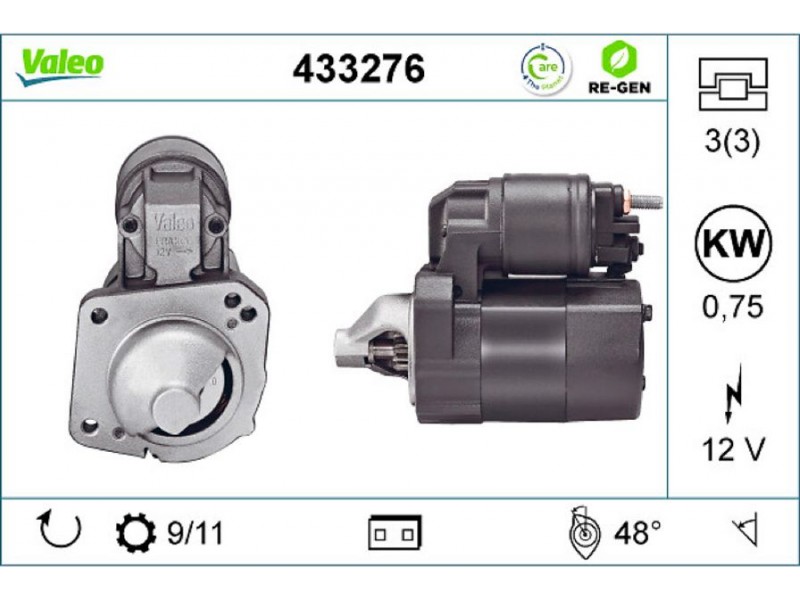 Criteries : Αριθμός δοντιών 1 9, Αριθμός δοντιών 2 11, Αριθμός οπών 3, Βάρος [kg] 3,22, Επαφή NO, Θέση/βαθμοί L 48, Ισχύς μίζας [kW] 0,75, Παλαιό εξάρτημα , Πλήθος οπών με βόλτα 3, Τάση [V] 12, Φορά περιστροφής Φορά περιστροφής προς τα δεξιά