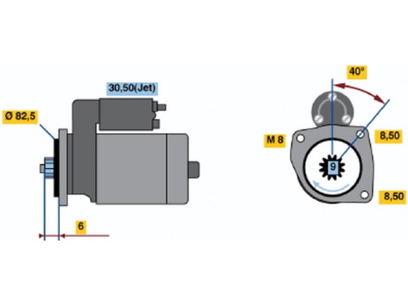 Criteries : Αριθμός δοντιών 9, Αρχική θέση γραναζιού [mm] 3,2, Γωνία Οπή στερέωσης [μοίρες] 40, Γωνία στήριξης [μοίρες] 40, Διαμέτρος οπής 3 [mm] 8,5, Διάμετρος οπής [mm] 8,5, Διάμετρος φλάντζας [mm] 82,5, Διαστάσεις σπειρώματος 1 M8x1.25, Επαφή 30, Επαφή 50, Θέση/βαθμοί rechts, Ισχύς μίζας [kW] 1,1, Μήκος [mm] 212, Παραλλαγή μίζας ελεύθερο, Πλήθος οπών με βόλτα 1, Πλήθος των οπών στερέωσης 2, Τάση [V] 12, Φορά περιστροφής Φορά περιστροφής προς τα δεξιά