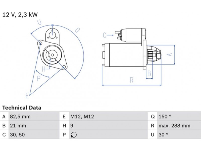 Criteries : Αριθμός δοντιών 9, Αρχική θέση γραναζιού [mm] 21, Γωνία Οπή στερέωσης [μοίρες] 30, Γωνία στήριξης [μοίρες] 30, Γωνία Στόμιο [μοίρες] 150, Διάμετρος φλάντζας [mm] 82,5, Διαστάσεις σπειρώματος 1 M12x1.75, Διαστάσεις σπειρώματος M12, Επαφή 30, Θέση/βαθμοί links, Ισχύς μίζας [kW] 2,3, Μήκος [mm] 288, Παλαιό εξάρτημα , Παραλλαγή μίζας αυτοέδραση, Πλήθος οπών με βόλτα 2, Πλήθος των οπών στερέωσης 2, Τάση [V] 12, Φορά περιστροφής Φορά περιστροφής προς τα δεξιά