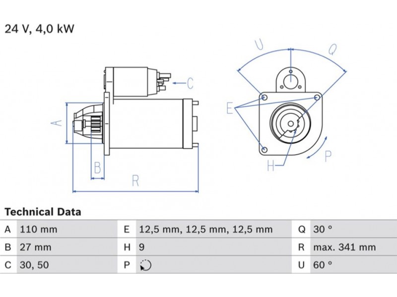 Criteries : Αριθμός δοντιών 9, Αρχική θέση γραναζιού [mm] 27, Γωνία Οπή στερέωσης [μοίρες] 60, Γωνία στήριξης [μοίρες] 60, Γωνία Στόμιο [μοίρες] 30, Διάμετρος οπής 2 [mm] 12,5, Διαμέτρος οπής 3 [mm] 12,5, Διάμετρος οπής [mm] 12,5, Διάμετρος φλάντζας [mm] 110, Επαφή 30, Επαφή 50, Θέση/βαθμοί links, Ισχύς μίζας [kW] 4, Μήκος [mm] 341, Παλαιό εξάρτημα , Παραλλαγή μίζας αυτοέδραση, Πλήθος οπών με βόλτα 0, Πλήθος των οπών στερέωσης 3, Τάση [V] 24, Φορά περιστροφής Φορά περιστροφής προς τα δεξιά