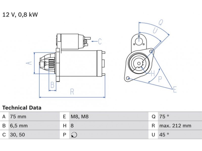 Criteries : Αριθμός δοντιών 8, Αρχική θέση γραναζιού [mm] 6,5, Γωνία Οπή στερέωσης [μοίρες] 45, Γωνία στήριξης [μοίρες] 45, Γωνία Στόμιο [μοίρες] 75, Διάμετρος φλάντζας [mm] 75, Διαστάσεις σπειρώματος 1 M8x1.25, Διαστάσεις σπειρώματος M8, Επαφή 30, Επαφή 50, Θέση/βαθμοί rechts, Ισχύς μίζας [kW] 0,8, Μήκος [mm] 212, Παλαιό εξάρτημα , Παραλλαγή μίζας αυτοέδραση, Πλήθος οπών με βόλτα 2, Πλήθος των οπών στερέωσης 0, Τάση [V] 12, Φορά περιστροφής Φορά περιστροφής προς τα δεξιά
