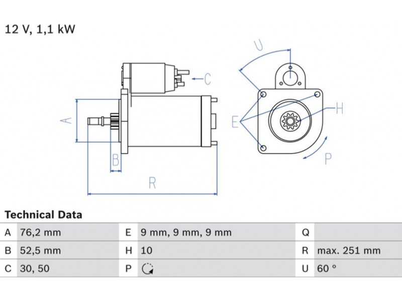 Criteries : Αριθμός δοντιών 10, Αρχική θέση γραναζιού [mm] 52,5, Γωνία Οπή στερέωσης [μοίρες] 60, Γωνία στήριξης [μοίρες] 60, Διάμετρος οπής 2 [mm] 9, Διαμέτρος οπής 3 [mm] 9, Διάμετρος οπής [mm] 9, Διάμετρος φλάντζας [mm] 76,2, Επαφή 30,50, Θέση/βαθμοί links, Ισχύς μίζας [kW] 1,1, Μήκος [mm] 251, Παλαιό εξάρτημα , Παραλλαγή μίζας ελεύθερο, Πλήθος οπών με βόλτα 0, Πλήθος των οπών στερέωσης 3, Τάση [V] 12, Φορά περιστροφής Φορά περιστρ. αντίθετα προς τη φορά των δεικτών του ρολογιού