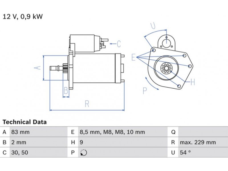Criteries : Αριθμός δοντιών 9, Αρχική θέση γραναζιού [mm] 1,8, Γωνία Οπή στερέωσης [μοίρες] 54, Γωνία στήριξης [μοίρες] 54, Διάμετρος οπής [mm] 8,5, Διαμέτρος τρύπας 4 [mm] 10, Διάμετρος φλάντζας [mm] 82,5, Διαστάσεις σπειρώματος 1 M8x1.25, Διαστάσεις σπειρώματος 2 M8x1.25, Επαφή 30, Επαφή 50, Θέση/βαθμοί rechts, Ισχύς μίζας [kW] 0,9, Μήκος [mm] 229, Παλαιό εξάρτημα , Παραλλαγή μίζας ξενη έδραση, Πλήθος οπών με βόλτα 2, Πλήθος των οπών στερέωσης 2, Τάση [V] 12, Φορά περιστροφής Φορά περιστροφής προς τα δεξιά