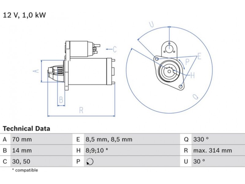 Criteries : Αριθμός δοντιών 10, Αριθμός δοντιών 8, Αριθμός δοντιών 9, Αρχική θέση γραναζιού [mm] 14, Γωνία Οπή στερέωσης [μοίρες] 30, Γωνία στήριξης [μοίρες] 30, Γωνία Στόμιο [μοίρες] 330, Διάμετρος οπής 2 [mm] 8,5, Διάμετρος οπής [mm] 8,5, Διάμετρος φλάντζας [mm] 70, Επαφή 30, Επαφή 50, Θέση/βαθμοί links, Ισχύς μίζας [kW] 1, Μήκος [mm] 314, Παλαιό εξάρτημα , Παραλλαγή μίζας αυτοέδραση, Πλήθος οπών με βόλτα 0, Πλήθος των οπών στερέωσης 2, Τάση [V] 12, Φορά περιστροφής Φορά περιστροφής προς τα δεξιά