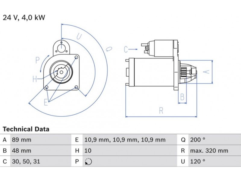 Criteries : Αριθμός δοντιών 10, Αρχική θέση γραναζιού [mm] 48, Γωνία Οπή στερέωσης [μοίρες] 120, Γωνία στήριξης [μοίρες] 120, Γωνία Στόμιο [μοίρες] 200, Διάμετρος οπής 2 [mm] 10,9, Διαμέτρος οπής 3 [mm] 10,9, Διάμετρος οπής [mm] 10,9, Διάμετρος φλάντζας [mm] 89, Επαφή 30, Επαφή 31, Επαφή 50, Θέση/βαθμοί rechts, Ισχύς μίζας [kW] 4, Μήκος [mm] 320, Παλαιό εξάρτημα , Παραλλαγή μίζας αυτοέδραση, Πλήθος οπών με βόλτα 0, Πλήθος των οπών στερέωσης 3, Τάση [V] 24, Φορά περιστροφής Φορά περιστροφής προς τα δεξιά