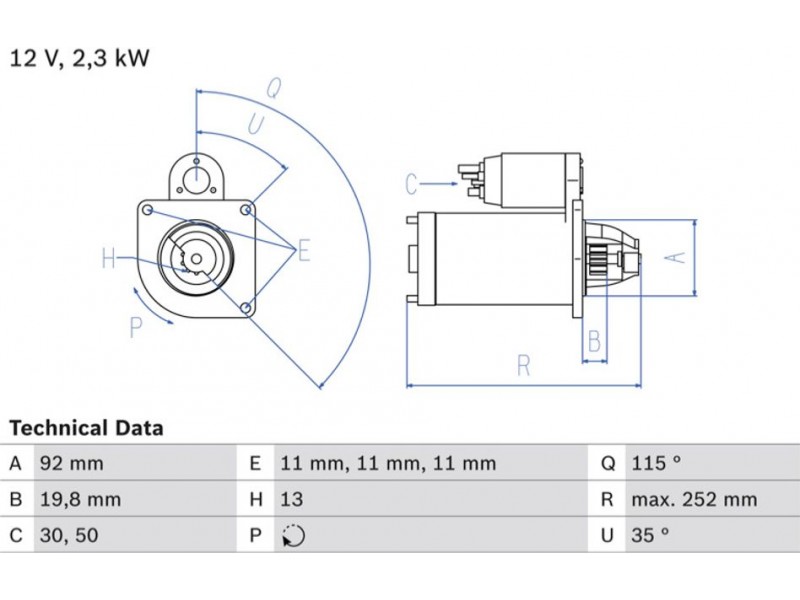 Criteries : Αριθμός δοντιών 13, Αρχική θέση γραναζιού [mm] 19,8, Γωνία Οπή στερέωσης [μοίρες] 35, Γωνία στήριξης [μοίρες] 35, Γωνία Στόμιο [μοίρες] 115, Διάμετρος οπής 2 [mm] 11, Διαμέτρος οπής 3 [mm] 11, Διάμετρος οπής [mm] 11, Διάμετρος φλάντζας [mm] 92, Επαφή 30, Επαφή 50, Θέση/βαθμοί rechts, Ισχύς μίζας [kW] 2,3, Μήκος [mm] 252, Παλαιό εξάρτημα , Παραλλαγή μίζας αυτοέδραση, Πλήθος οπών με βόλτα 0, Πλήθος των οπών στερέωσης 3, Τάση [V] 12, Φορά περιστροφής Φορά περιστροφής προς τα δεξιά