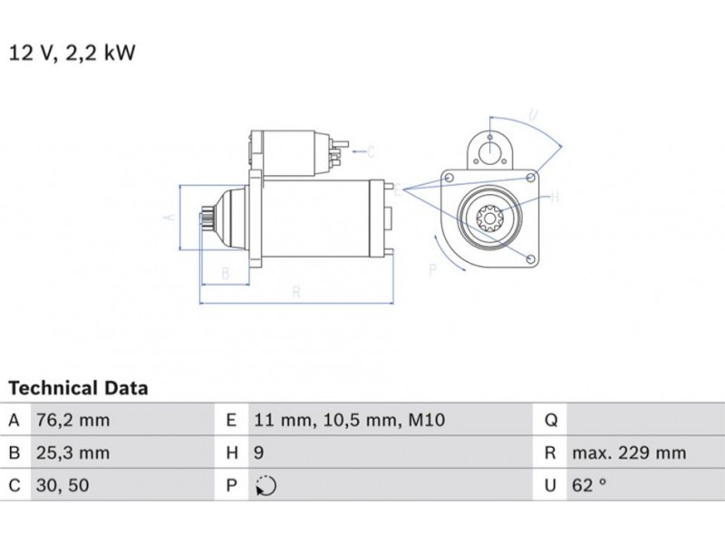 Criteries : Αριθμός δοντιών 9, Αρχική θέση γραναζιού [mm] 25,3, Γωνία Οπή στερέωσης [μοίρες] 62, Γωνία στήριξης [μοίρες] 62, Διάμετρος οπής 2 [mm] 10,5, Διάμετρος οπής [mm] 11, Διάμετρος φλάντζας [mm] 76,2, Διαστάσεις σπειρώματος 2 M10x1.5, Επαφή 30,50, Θέση/βαθμοί rechts, Ισχύς μίζας [kW] 2,2, Μήκος [mm] 243, Παλαιό εξάρτημα , Παραλλαγή μίζας ελεύθερο, Πλήθος οπών με βόλτα 1, Πλήθος των οπών στερέωσης 2, Τάση [V] 12, Φορά περιστροφής Φορά περιστροφής προς τα δεξιά