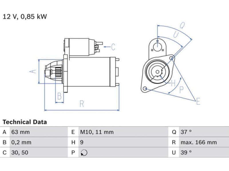 Criteries : Αριθμός δοντιών 9, Αρχική θέση γραναζιού [mm] -0,12, Γωνία Οπή στερέωσης [μοίρες] 39, Γωνία στήριξης [μοίρες] 39, Γωνία Στόμιο [μοίρες] 37, Διάμετρος οπής 2 [mm] 11, Διάμετρος φλάντζας [mm] 63, Διαστάσεις σπειρώματος M10, Επαφή 30, Θέση/βαθμοί rechts, Ισχύς μίζας [kW] 0,9, Μήκος [mm] 166, Παλαιό εξάρτημα , Παραλλαγή μίζας αυτοέδραση, Πλήθος οπών με βόλτα 1, Πλήθος των οπών στερέωσης 2, Τάση [V] 12, Φορά περιστροφής Φορά περιστροφής προς τα δεξιά