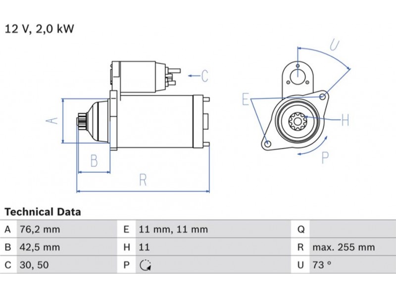 Criteries : Αριθμός δοντιών 11, Αρχική θέση γραναζιού [mm] 42,5, Γωνία Οπή στερέωσης [μοίρες] 73, Γωνία στήριξης [μοίρες] 73, Διάμετρος οπής 2 [mm] 11, Διάμετρος οπής [mm] 11, Διάμετρος φλάντζας [mm] 76,2, Επαφή 30, Επαφή 50, Θέση/βαθμοί rechts, Ισχύς μίζας [kW] 2, Μήκος [mm] 255, Παλαιό εξάρτημα , Παραλλαγή μίζας ελεύθερο, Πλήθος οπών με βόλτα 0, Πλήθος των οπών στερέωσης 2, Τάση [V] 12, Φορά περιστροφής Φορά περιστρ. αντίθετα προς τη φορά των δεικτών του ρολογιού