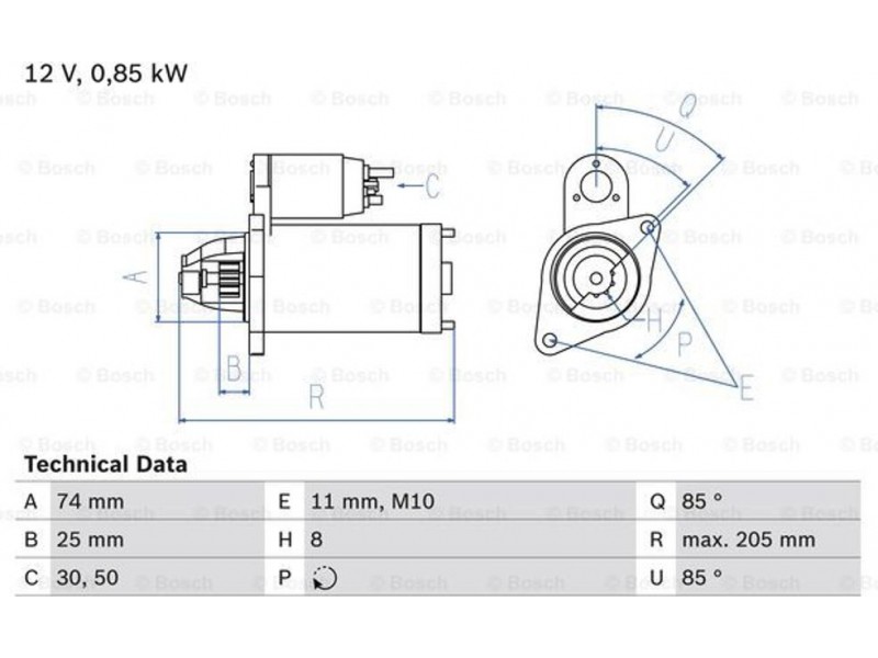Criteries : Αριθμός δοντιών 8, Αρχική θέση γραναζιού [mm] 25, Γωνία Οπή στερέωσης [μοίρες] 85, Γωνία στήριξης [μοίρες] 85, Γωνία Στόμιο [μοίρες] 85, Διαμέτρος οπής [mm] 11, Διάμετρος φλάντζας [mm] 74, Διαστάσεις σπειρώματος 1 M10, Επαφή 30, Επαφή 50, Θέση/βαθμοί rechts, Ισχύς μίζας [kW] 0,85, Μήκος [mm] 205, Παλαιό εξάρτημα , Παραλλαγή μίζας αυτοέδραση, Πλήθος οπών με βόλτα 1, Πλήθος των οπών στερέωσης 1, Τάση [V] 12, Φορά περιστροφής Φορά περιστροφής προς τα δεξιά