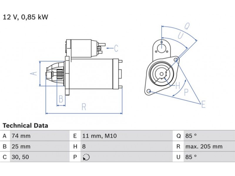 Criteries : Αριθμός δοντιών 8, Αρχική θέση γραναζιού [mm] 25, Γωνία Οπή στερέωσης [μοίρες] 85, Γωνία στήριξης [μοίρες] 85, Γωνία Στόμιο [μοίρες] 85, Διάμετρος οπής [mm] 11, Διάμετρος φλάντζας [mm] 74, Διαστάσεις σπειρώματος 1 M10x1.5, Επαφή 30, Θέση/βαθμοί rechts, Ισχύς μίζας [kW] 0,85, Μήκος [mm] 205, Παλαιό εξάρτημα , Παραλλαγή μίζας αυτοέδραση, Πλήθος οπών με βόλτα 1, Πλήθος των οπών στερέωσης 1, Τάση [V] 12, Φορά περιστροφής Φορά περιστροφής προς τα δεξιά