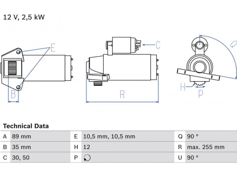 Criteries : Αριθμός δοντιών 12, Αρχική θέση γραναζιού [mm] 35,4, Γωνία Οπή στερέωσης [μοίρες] 90, Γωνία στήριξης [μοίρες] 90, Γωνία Στόμιο [μοίρες] 90, Διάμετρος οπής 2 [mm] 10,5, Διάμετρος οπής [mm] 10,5, Διάμετρος φλάντζας [mm] 89, Επαφή 30,50, Θέση/βαθμοί rechts, Ισχύς μίζας [kW] 2,5, Μήκος [mm] 255, Παλαιό εξάρτημα , Παραλλαγή μίζας αυτοέδραση, Πλήθος οπών με βόλτα 0, Πλήθος των οπών στερέωσης 2, Τάση [V] 12, Φορά περιστροφής Φορά περιστροφής προς τα δεξιά