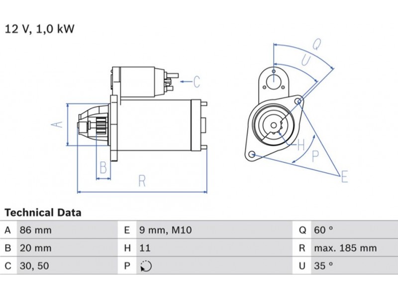 Criteries : Αριθμός δοντιών 11, Αρχική θέση γραναζιού [mm] 20, Γωνία Οπή στερέωσης [μοίρες] 35, Γωνία στήριξης [μοίρες] 35, Γωνία Στόμιο [μοίρες] 60, Διάμετρος οπής [mm] 9, Διάμετρος φλάντζας [mm] 86, Διαστάσεις σπειρώματος 1 M10x1.5, Επαφή 30, Επαφή 50, Θέση/βαθμοί rechts, Ισχύς μίζας [kW] 1, Μήκος [mm] 185, Παλαιό εξάρτημα , Παραλλαγή μίζας αυτοέδραση, Πλήθος οπών με βόλτα 1, Πλήθος των οπών στερέωσης 1, Τάση [V] 12, Φορά περιστροφής Φορά περιστροφής προς τα δεξιά